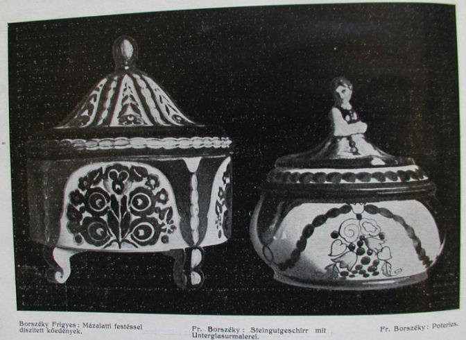 (Megyaszló, 1880 márc. 5. - Budapest, 1955 ápr. 15.) Művészeti tanulmányait festőként 1899-1903 között végezte Balló Ede tanítványaként a Budapesti Mintarajz Iskolában. Utána Münchenben folytatta Hollósy Simon magániskolájában, majd megfordult Hollandiában és Londonban is. 1915-ben szakít a festészettel, és mint keramikus dolgozik tovább. Kezdeti szakaszában főképpen csak kerámiafestéssel foglalkozik, cseh és magyar gyáraktól vásárolt fehér árúkkal dolgozik. 1921-ben megalakítja kerámia üzemét a Pesterzsébeti Előd utca 35-37-ben. Borszéky Frigyes Magyar Művészeti Kerámia Műhely néven. Borszéky stílusa nemzetközi összehasonlításban leginkább a bécsi művészek Karl Klimt, és Ernst Wahlis Serapis fajanszaihoz hasonlítható. Az üzem 1925-ben csődbe jut, és ezzel gyakorlatilag lezárul Borszéky keramikusi pályafutása.