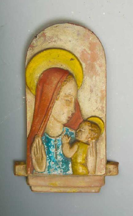Dr Rank Rezső: Falidísz, Mária a kis deddel 1920-30-as évek Magasság: 18cm |