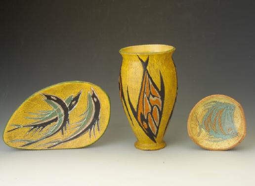 9. Gorka Lívia: Vases and dishes with painted fish motif about 1950-60 With painted and scratched Gorka Lívia monogram | |
